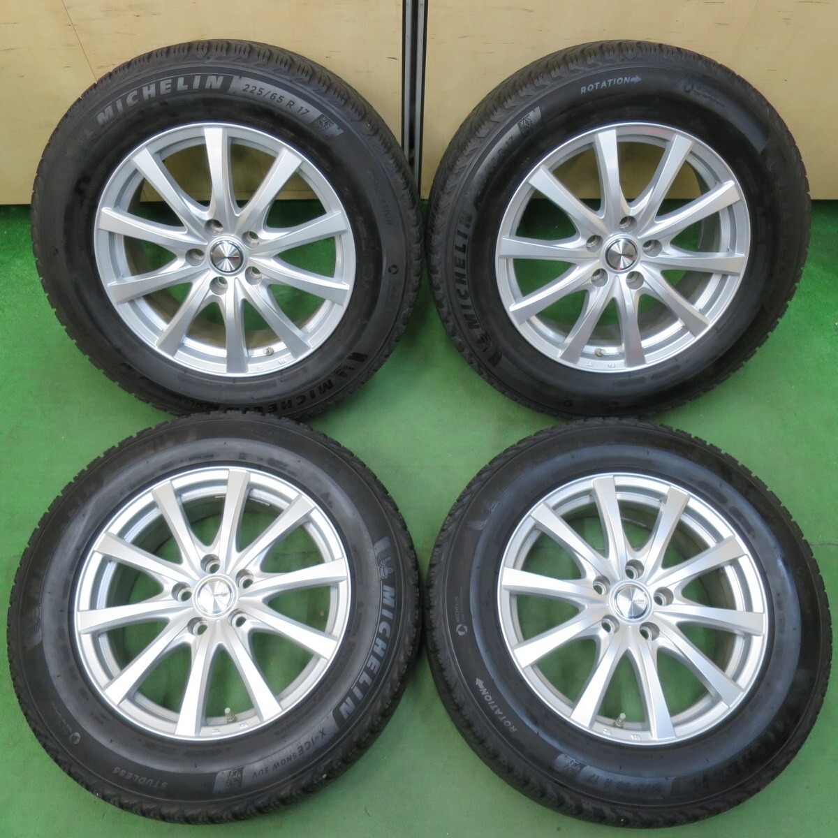 - バリ溝 綺麗 9分★スタッドレス 225/65R17 ミシュラン X-ICE SNOW SUV ravrion RS01 ラブリオン PCD114.3/5H★5010301イス