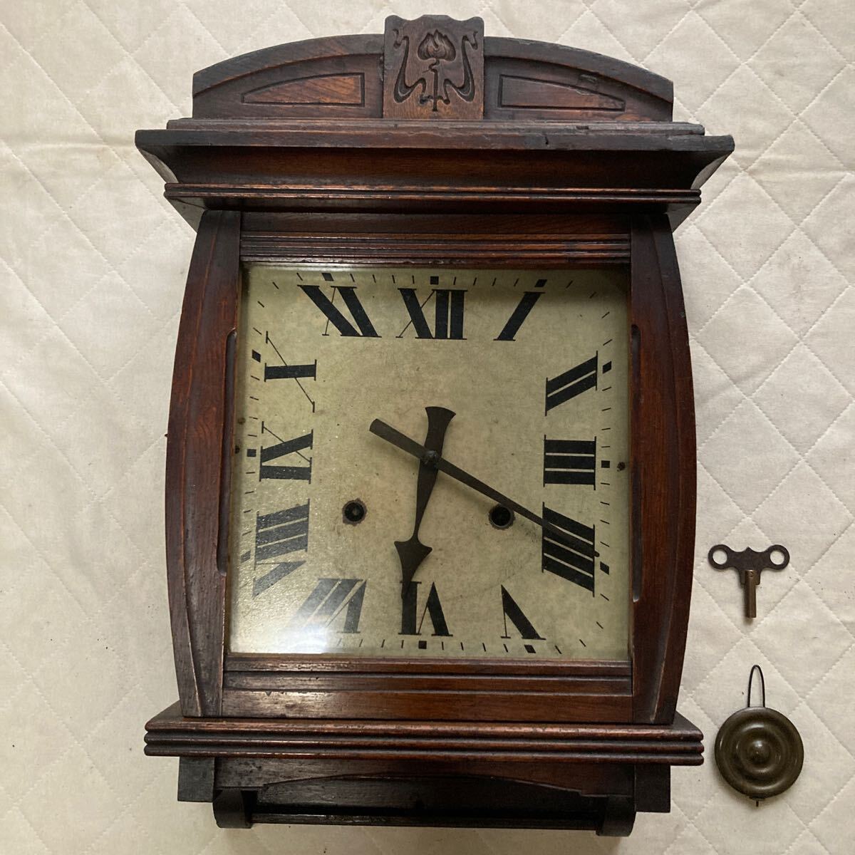 - アンティーク.古いドイツ製.木製.柱時計.明治.大正時代.鍵付き.振り子付き.ゼンマイ式.稼働品.全て完品です.全ての重さ約4.5kgです。