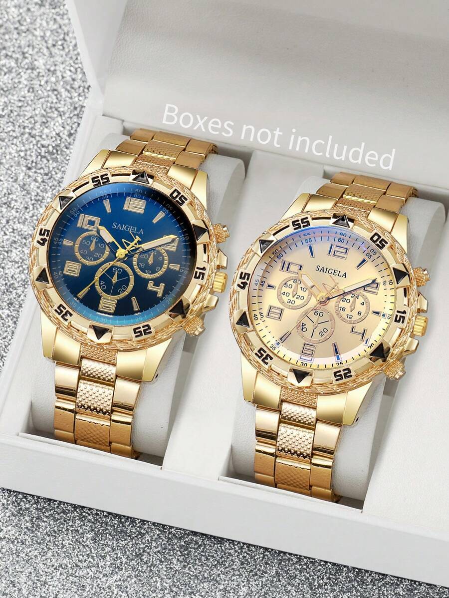 - 腕時計 メンズ セット 2個セット メンズファッション 三眼 数字デザイン クォーツ腕時計 ステンレスストラップ