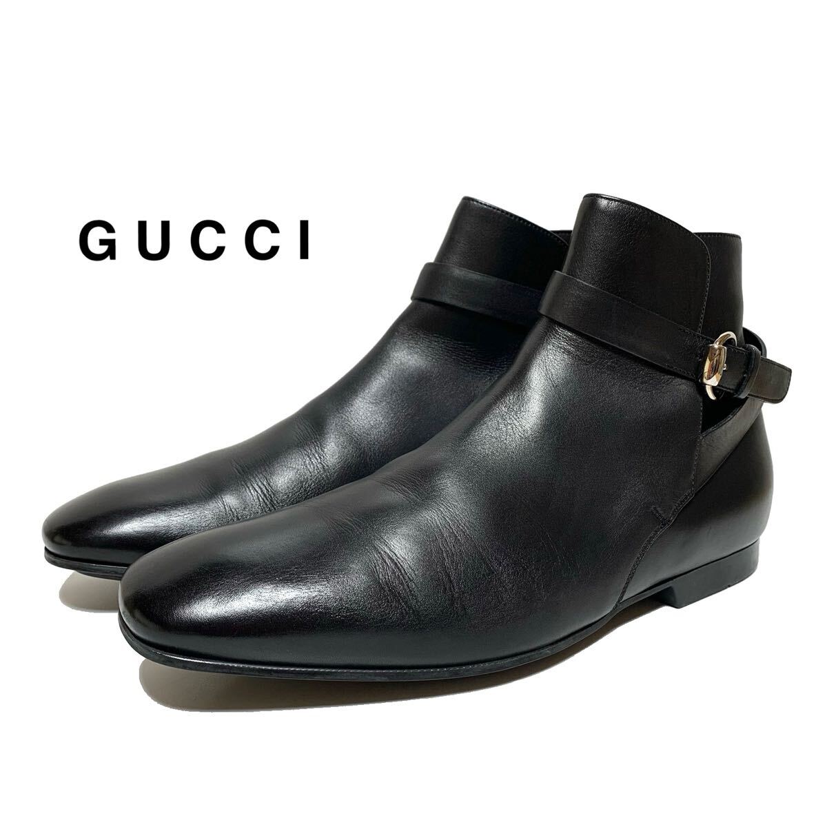 > ☆良品 GUCCI グッチ GGパターン レザー ジョッパーブーツ 黒 イタリア製 ストラップ ショートブーツ 革靴 ドレスシューズ