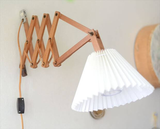 - デンマークから 木製のシザーランプ シェード付き 壁付け 壁掛け ウォールライト 北欧照明 ヴィンテージ アンティーク il0119