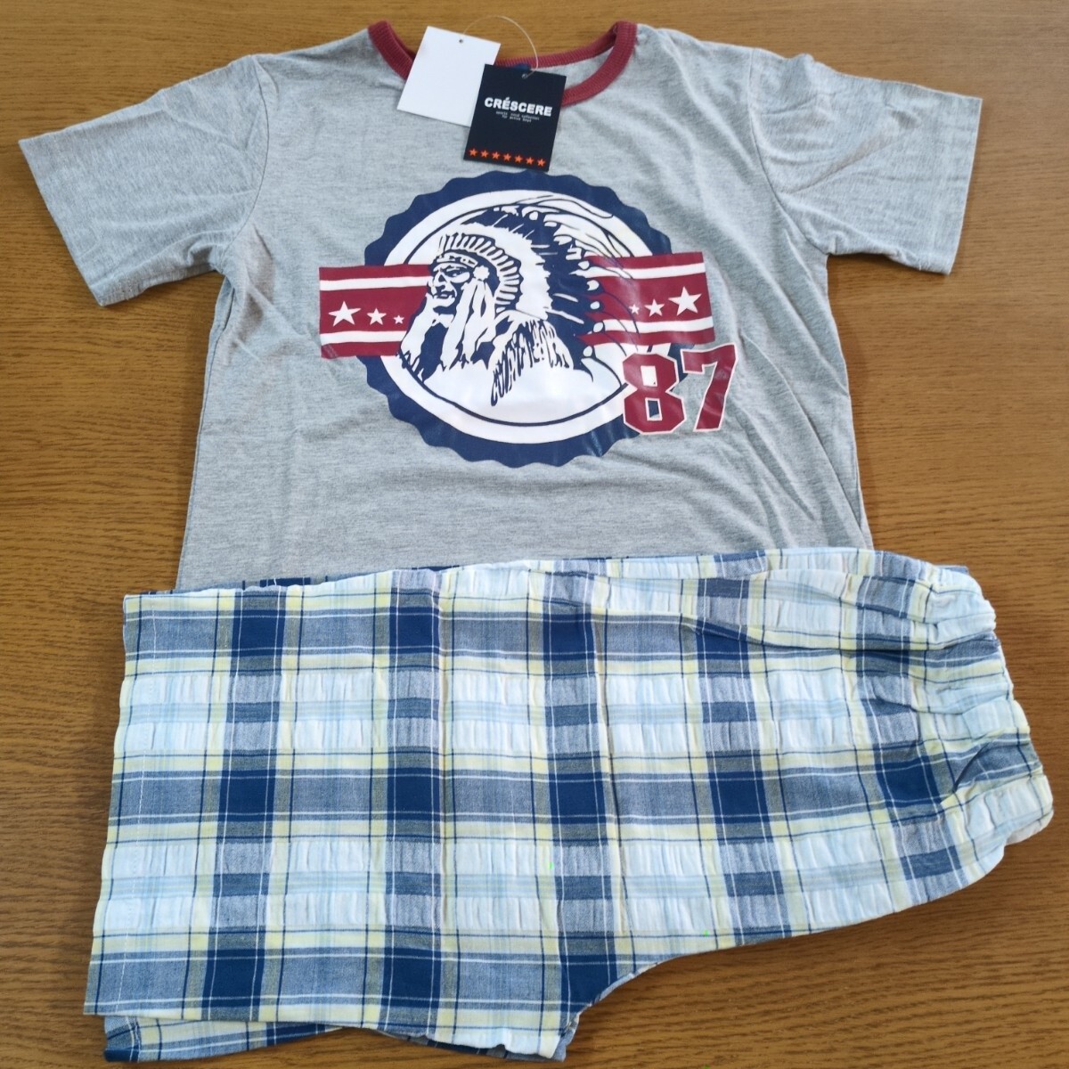 > W☆新品☆CRESCERE☆パジャマ☆半袖・半パンツ☆サイズ140cm☆灰色・チェック柄☆男子用☆No.2757