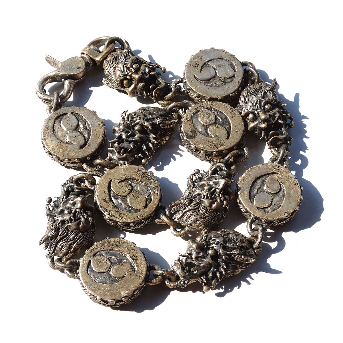 > 450g Mexico sterling silver シルバー メキシコ ウォレットチェーン ネックレス 作家物 鬼 デビル 太鼓 和太鼓 ヴィンテージ スターリング