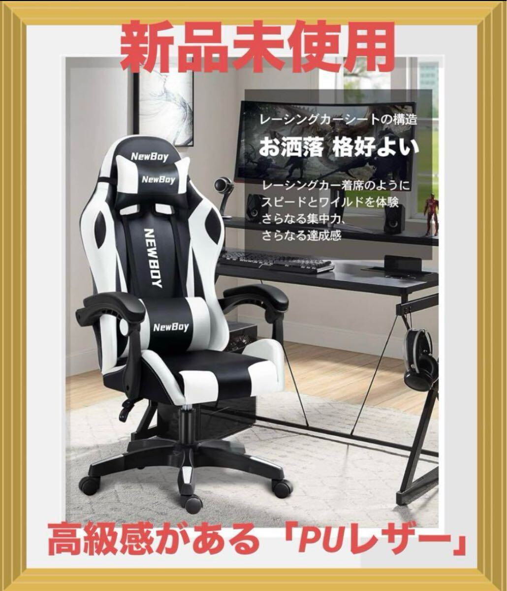 - ゲーミングチェア オフィスチェア パソコンチェア リクライニングBK/WH