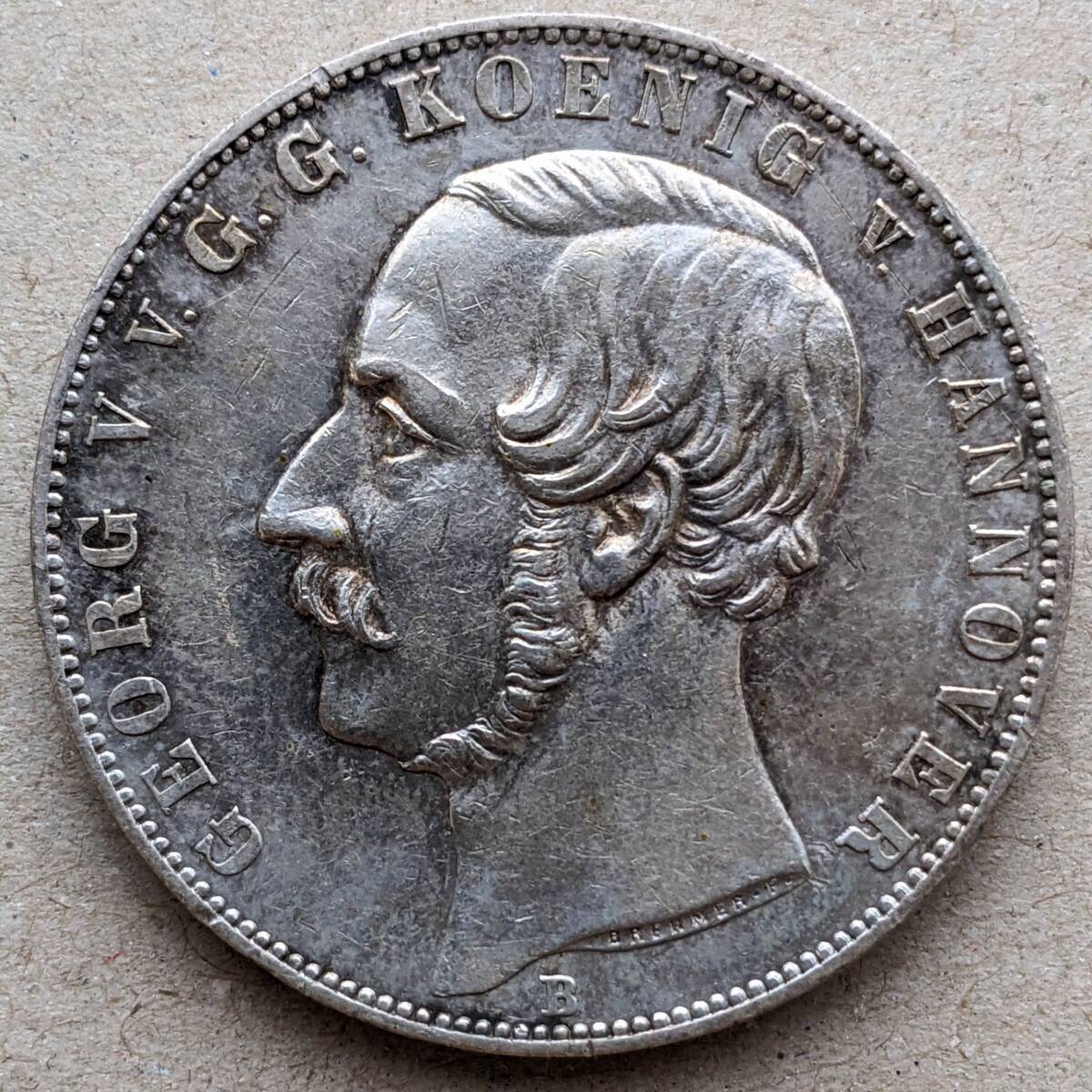 - 1862年 ドイツ ハノーファー ゲオルグ5世 2ターラー 銀貨 ハノーファーミント VF