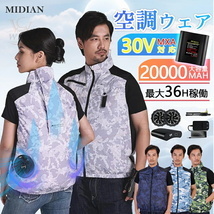 - MIDIAN 空調ベスト 空調ウェア 空調作業服 5段階風量 バッテリー ファンセット 20000mAh 薄型 夏 熱中症対策 UVカット現場 外仕事 暑さ対策