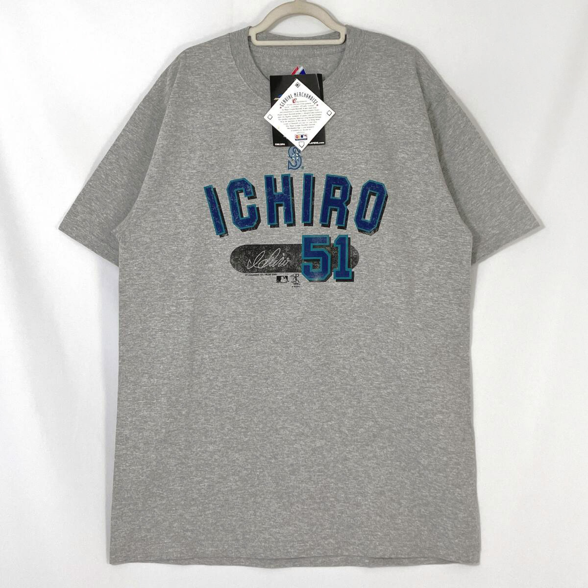 > 【タグ付】シアトルマリナーズ イチロー グラフィック Tシャツ グレー Mサイズ Majestic マジェスティック