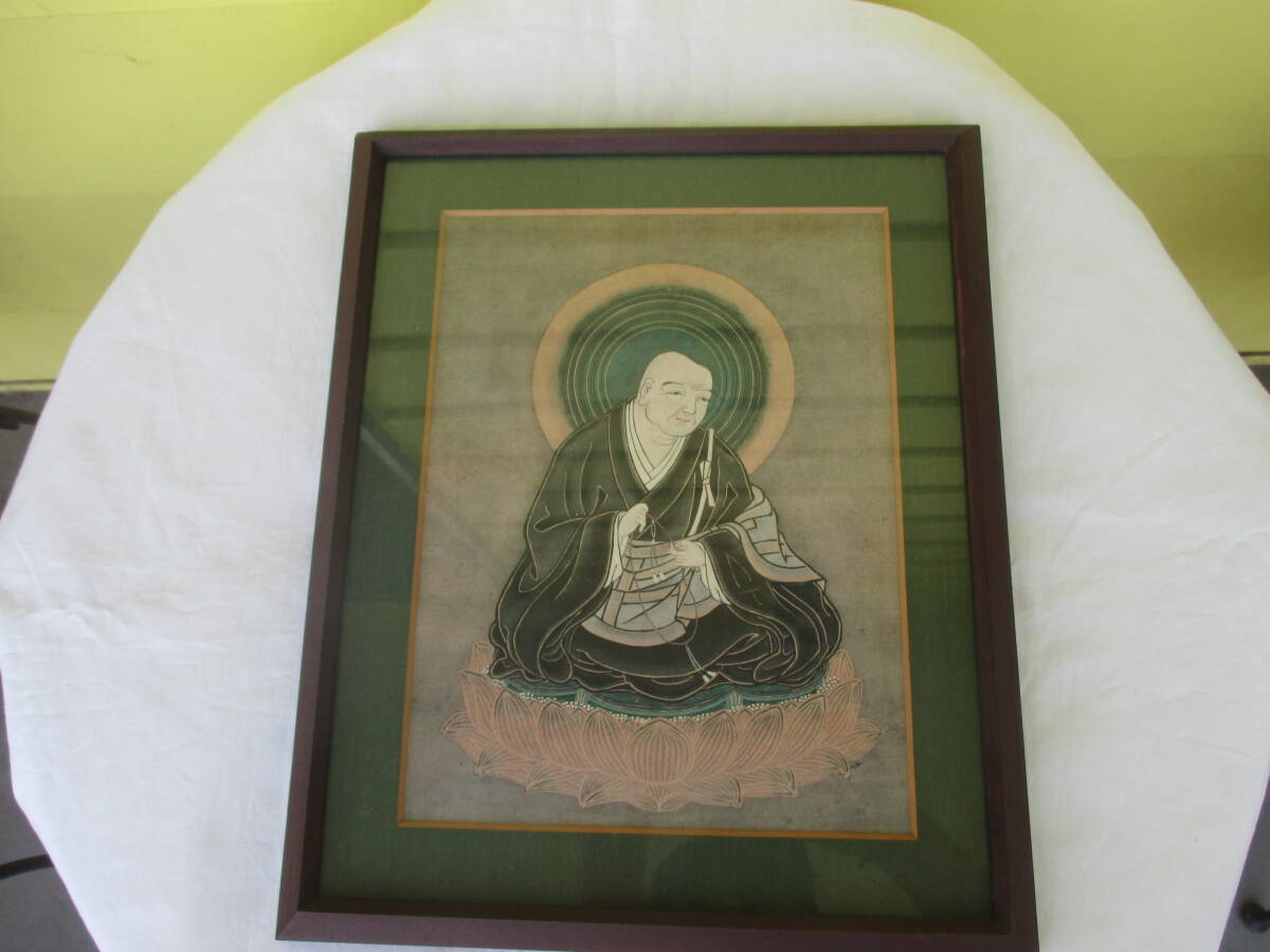 - ★法然上人 浄土宗祖法然上人御影 大鹿山弘経寺第三十世 光誉進徳晋山記念 昭和59年 横26.6×縦33㎝×2㎝ 現状品