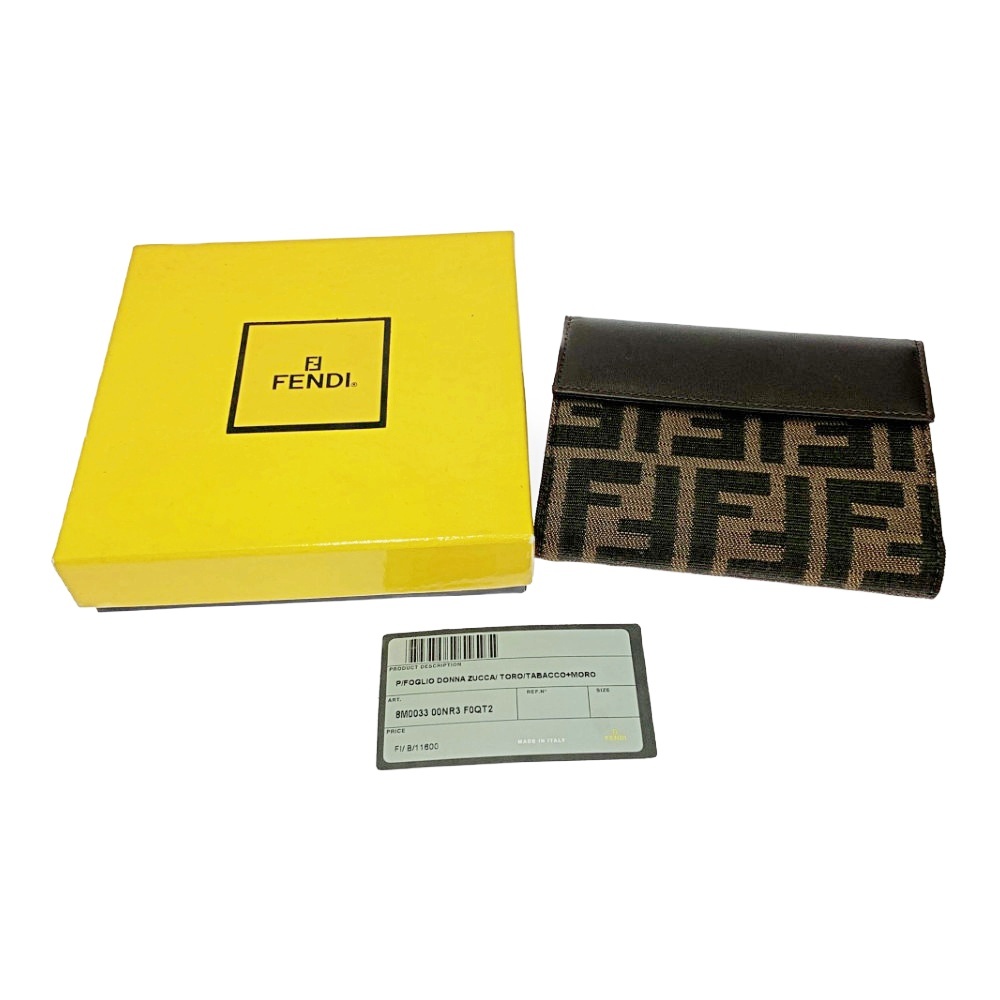 - 【箱付き】 FENDI フェンディ キャンバス ズッカ柄 Wホック 二つ折り財布 ブラウン 459881 二つ折り財布