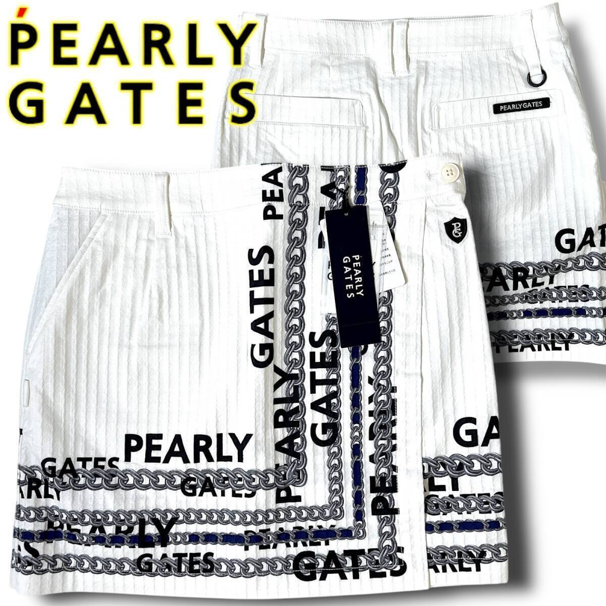 - ◆新品 PEARLY GATES パーリーゲイツ 定価3万 速乾通気性 シアサッカー調 チェーンロゴ柄 総柄 ストレッチ ミニ スカート 2 L 春夏秋 C97