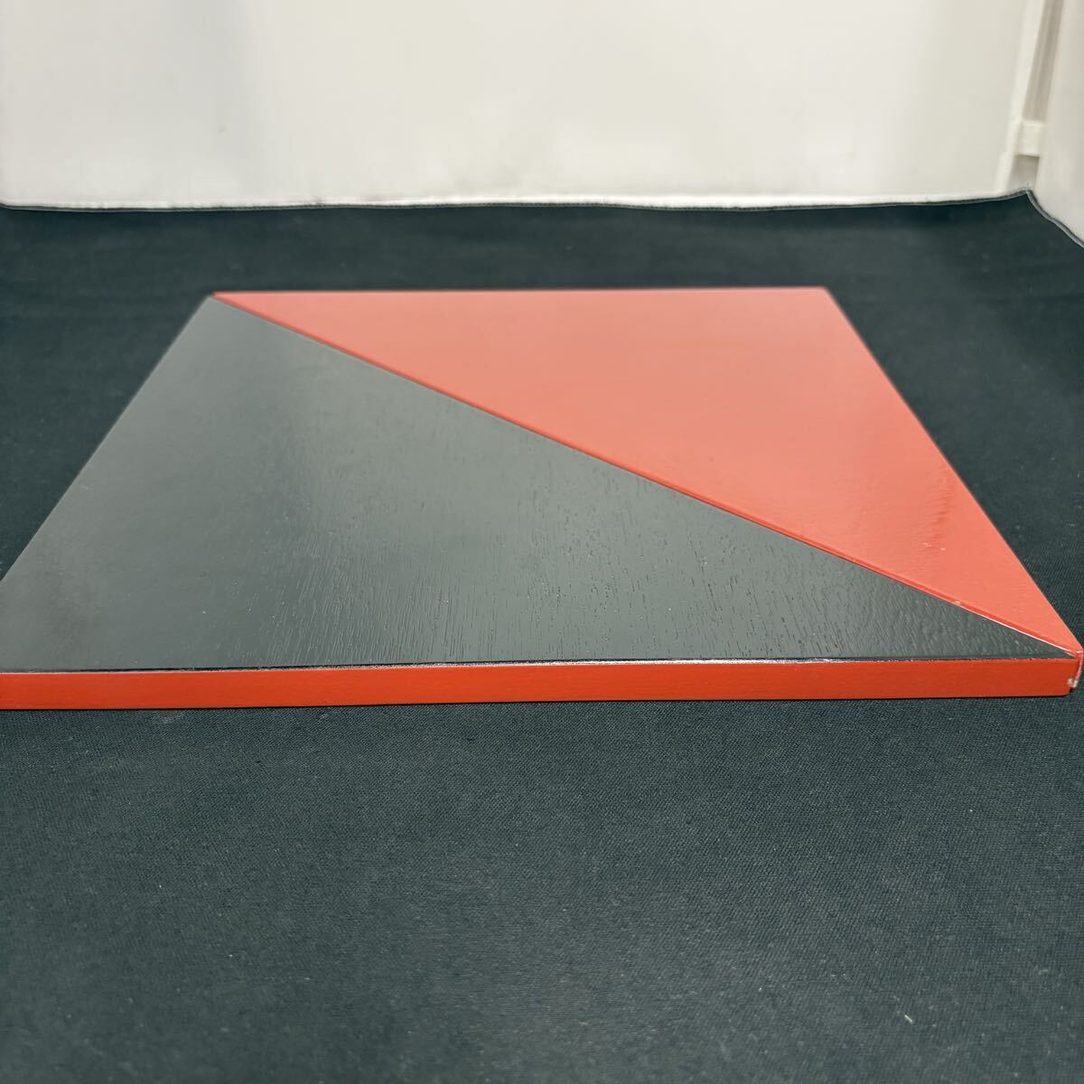 - 天然木 黒朱塗 敷板 花台 直径30.5cm 三角形 漆芸 花器 華道具 茶道具 (08227E