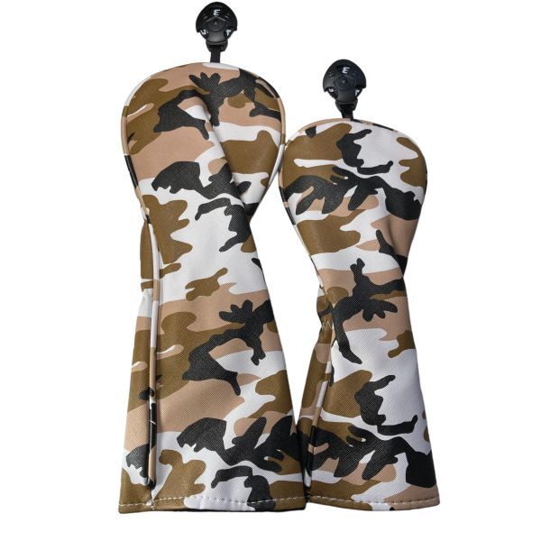 - 【未使用】フェアウェイウッド用&ユーティリティ用ヘッドカバー2個セット 迷彩ブラウン