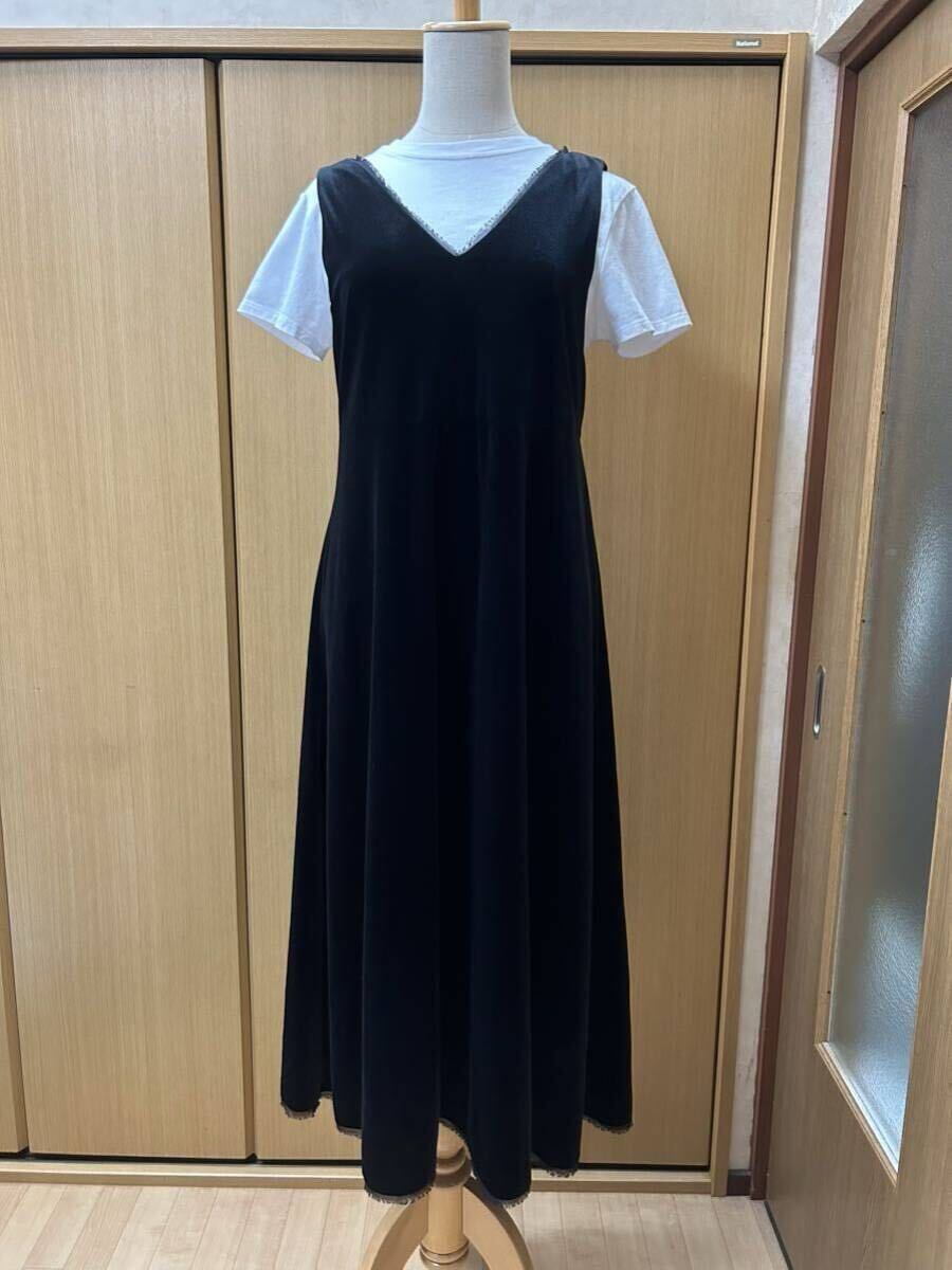 - 定価15950円 ミラオーウェン ベロアワンピース 半袖Tシャツ付 ブラック ロング丈 黒 サイズ1
