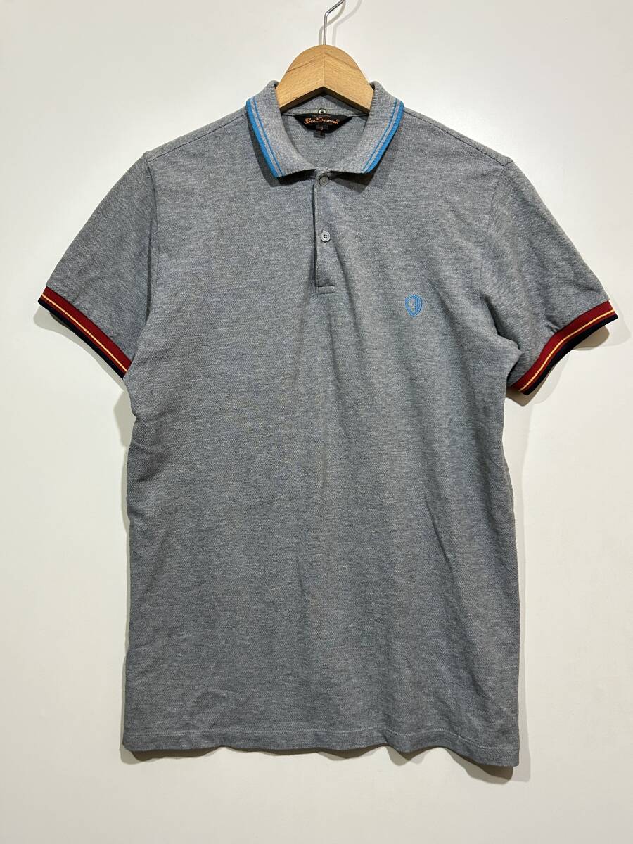 > ★ Ben Sherman ベンシャーマン 半袖 コットン ポロシャツ グレー S グレー ライン入り ワンポイント刺繍入り
