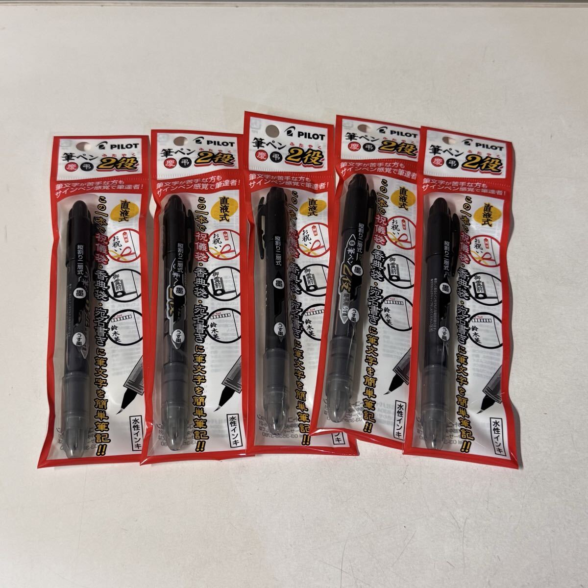 - パイロット 筆ペン 慶弔 2役 直液式 墨 うす墨 5本 筆記用具 冠婚葬祭