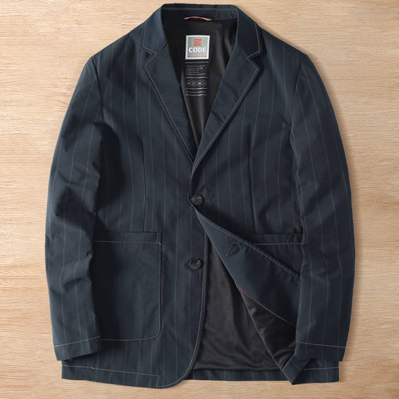 > T0424-M 濃紺 新品 ブレザー ストライプ ストレッチ 薄手 テーラードジャケット メンズ 防シワ 細身 春夏 軽量 ビジネス ジャケット