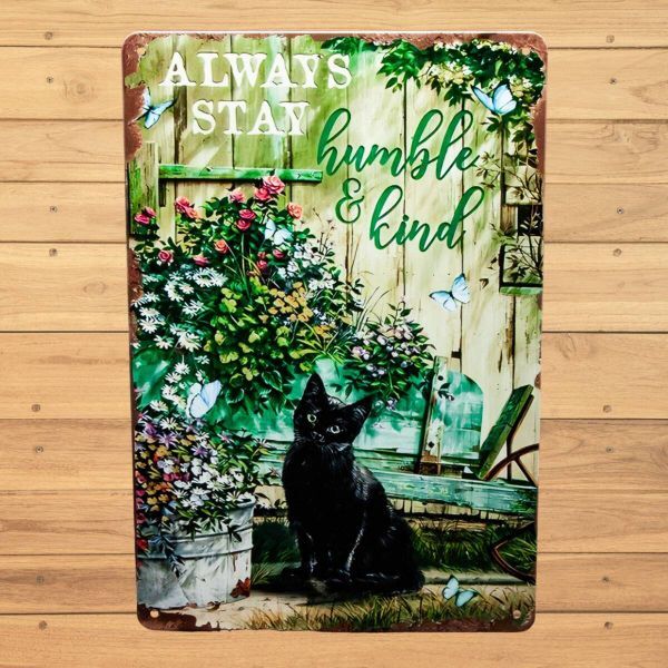 - ブリキ看板 黒猫と蝶々と花のブリキ看板 20㎝×30㎝ 新品