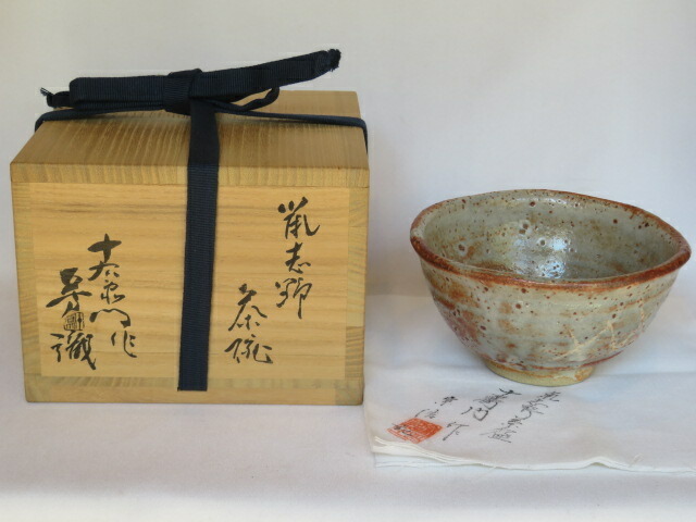 > (三右衛門◆祭り)美濃焼 大萱八坂窯 加藤十右衛門作 鼠志野茶碗 芳右衛門識【税込・送料込】【中古・美品】