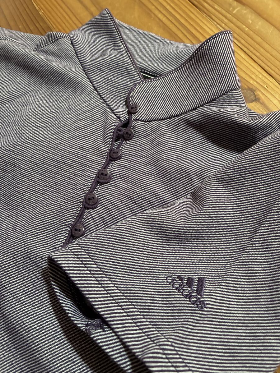 > 送料込み!! adidas 半袖Tシャツ チャイナ風 アディダス 紫 パープル Mサイズ GOLF ゴルフウェアー