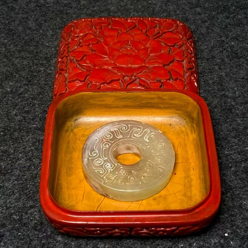 - 清代・老玉 唐物 漆器のアクセサリーボックスに古玉を入れる 古玉彫 天然石 稀少珍品 古美術 古賞物 古置物 旧蔵 8.16