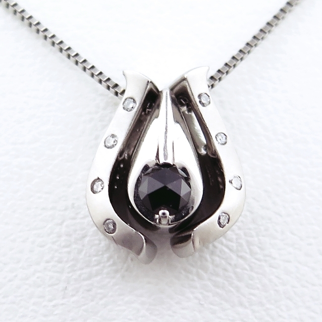 > Pt850/Pt900★プラチナ ネックレス リバーシブル ◇ブラックダイヤモンド/ダイヤ チェーン最長45cm ギフト【中古】/e6260/e9509