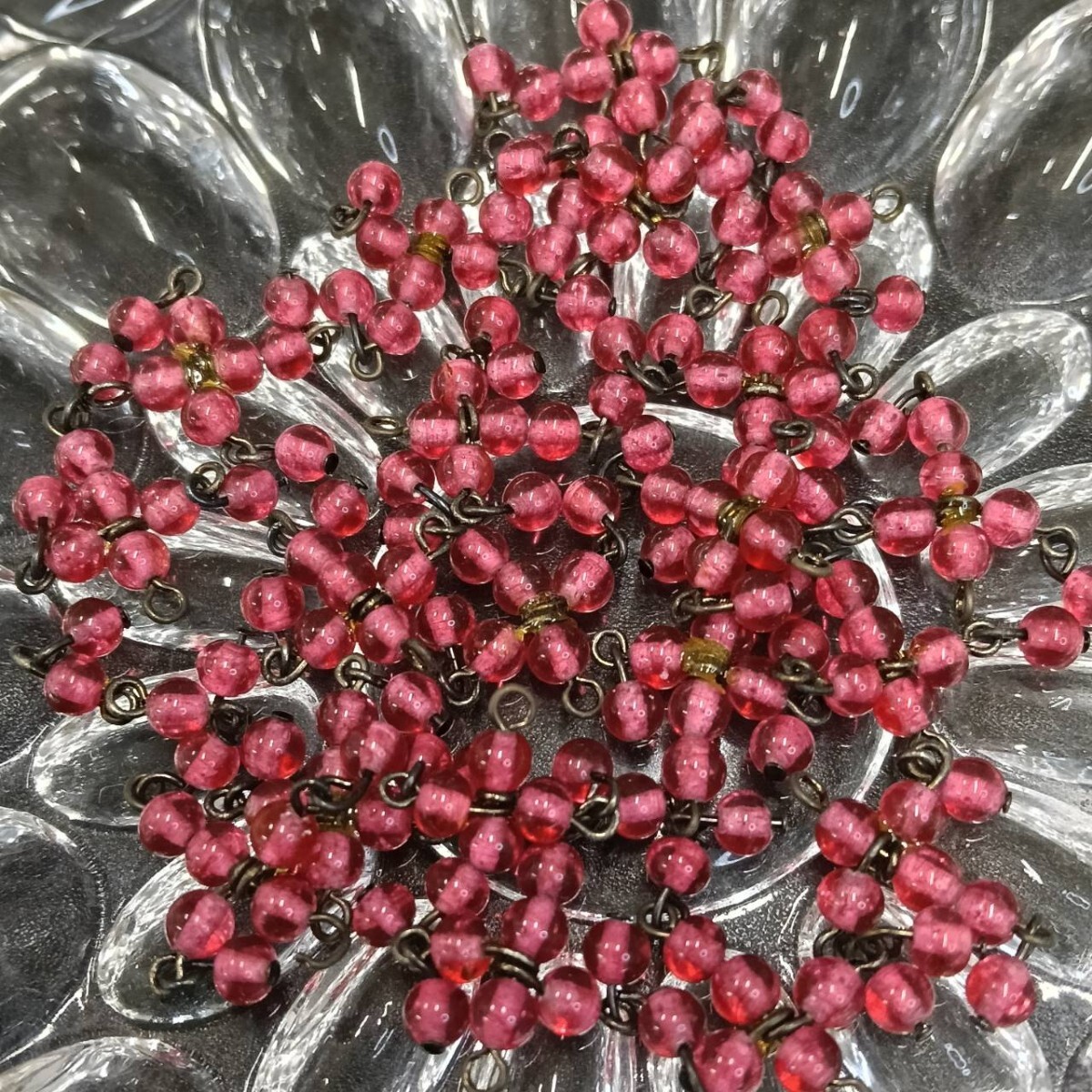 > ☆未使用 大量 金具付き チェコ ガラスビーズ 28g 4m ラウンド 赤 ボルドー系 大粒 ヴィンテージ パーツ アクセサリー ネックレス B-302