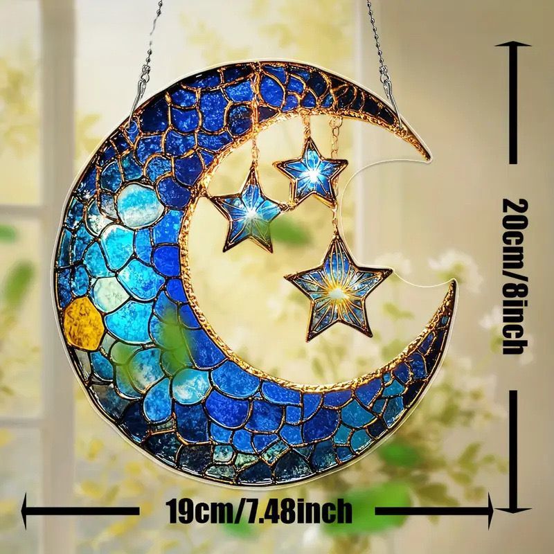 - 【月・星】アクリルプレート 飾り サンキャッチャー チェーン付き オブジェ お洒落 壁や窓辺の飾りに◎