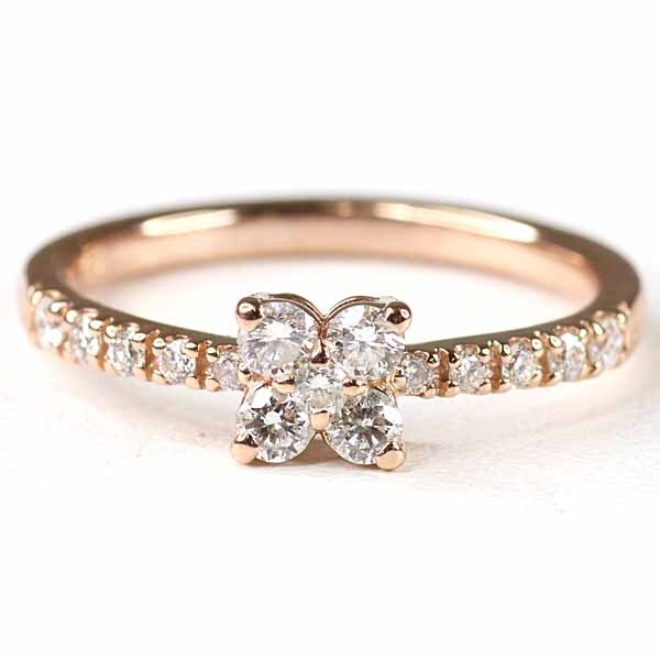 > 4℃ ヨンドシー K18イエローゴールド リング ダイヤモンド フラワーモチーフ 約10号 750YG イエローゴールド 仕上げ済 【中古】Aランク