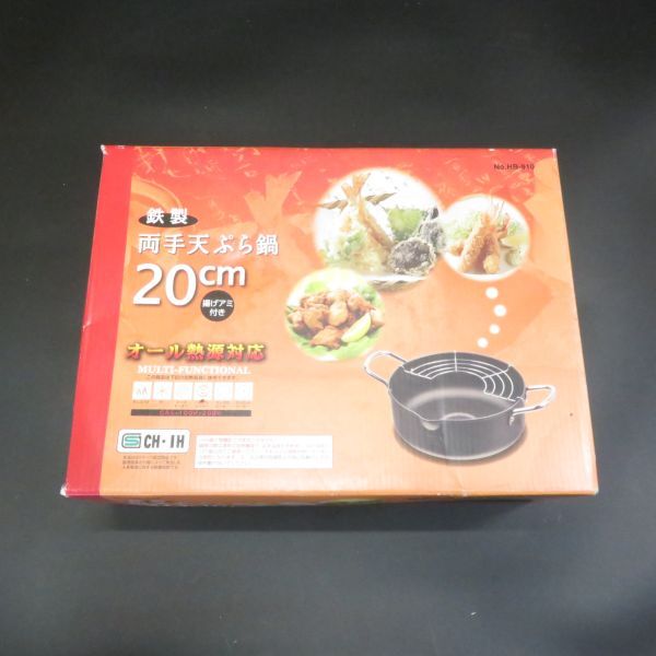 - U09 美品 天ぷら鍋 20cm IH対応 オール熱源対応 SGマークあり HB-910 揚げ網付き 鉄製 揚げ物 調理器具 箱付き