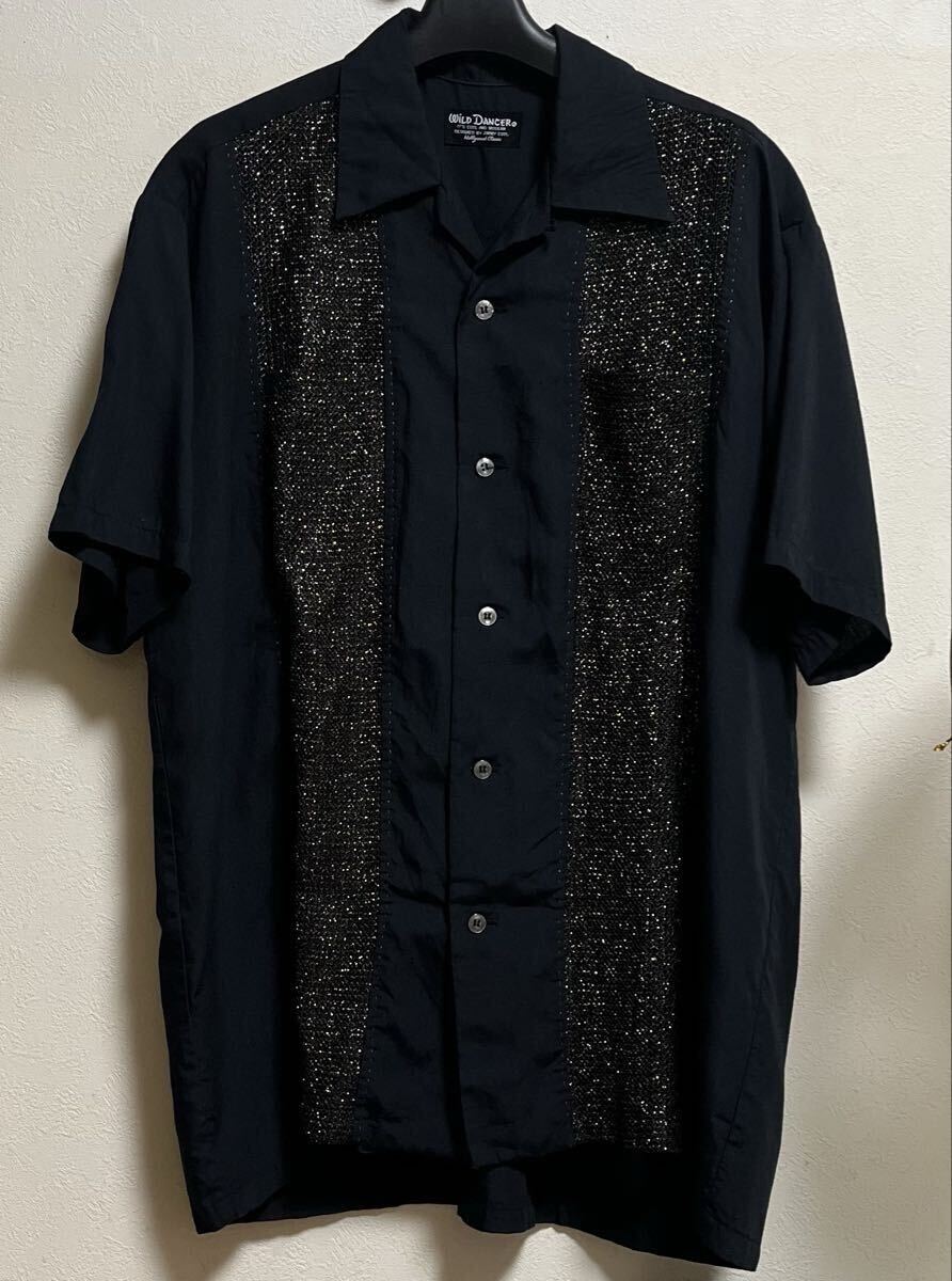 - 80s ワイルドダンサー シャツ 黒 ラメ ツートン 半袖50s ロカビリー クールス チョッパー クリームソーダ ドライボーンズ ペパーミント