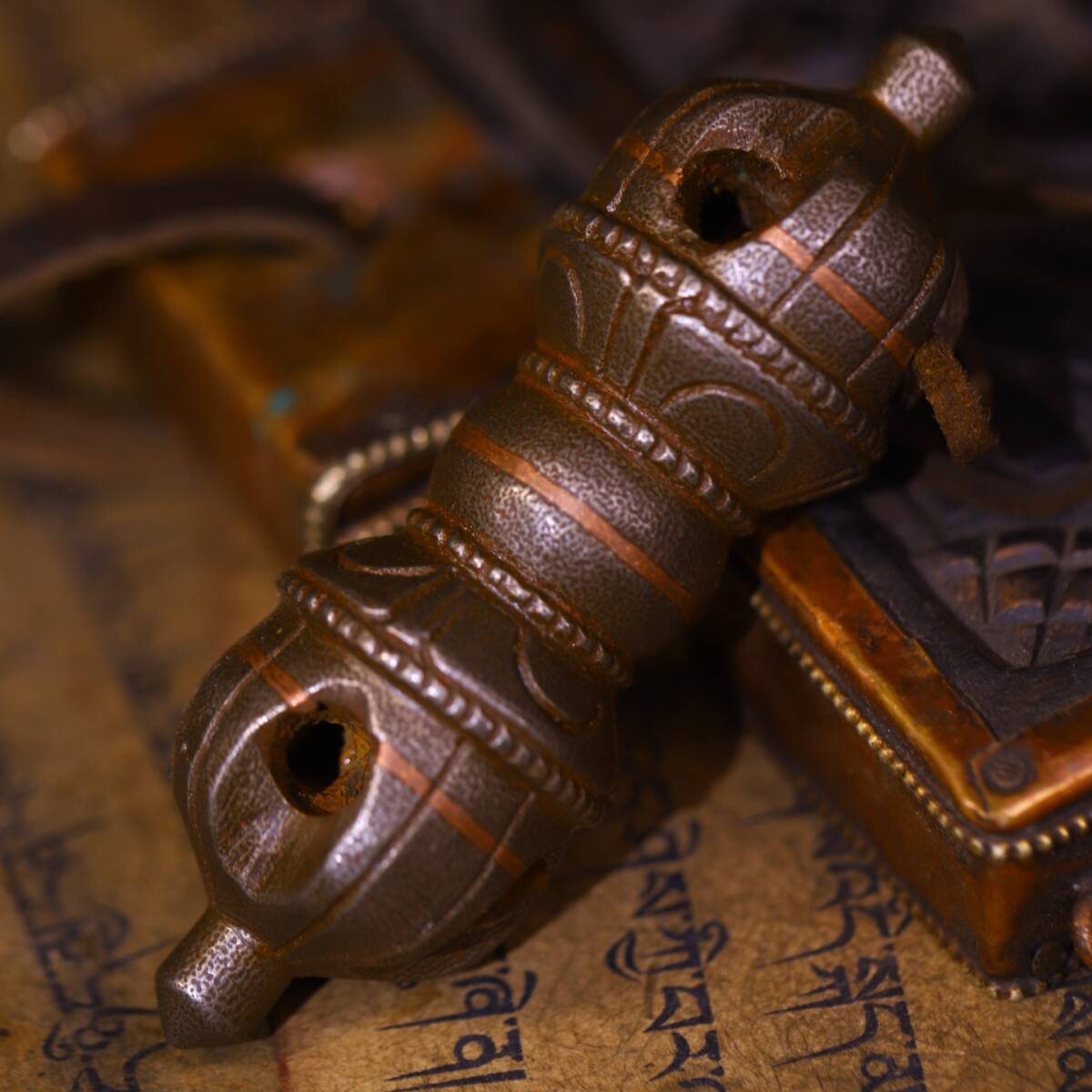 - 唐物 清 天鐵 純手工敲打 鏨刻磨損痕迹明顯法器 極細工 古美術品 時代物 中国古玩 骨董品 D68