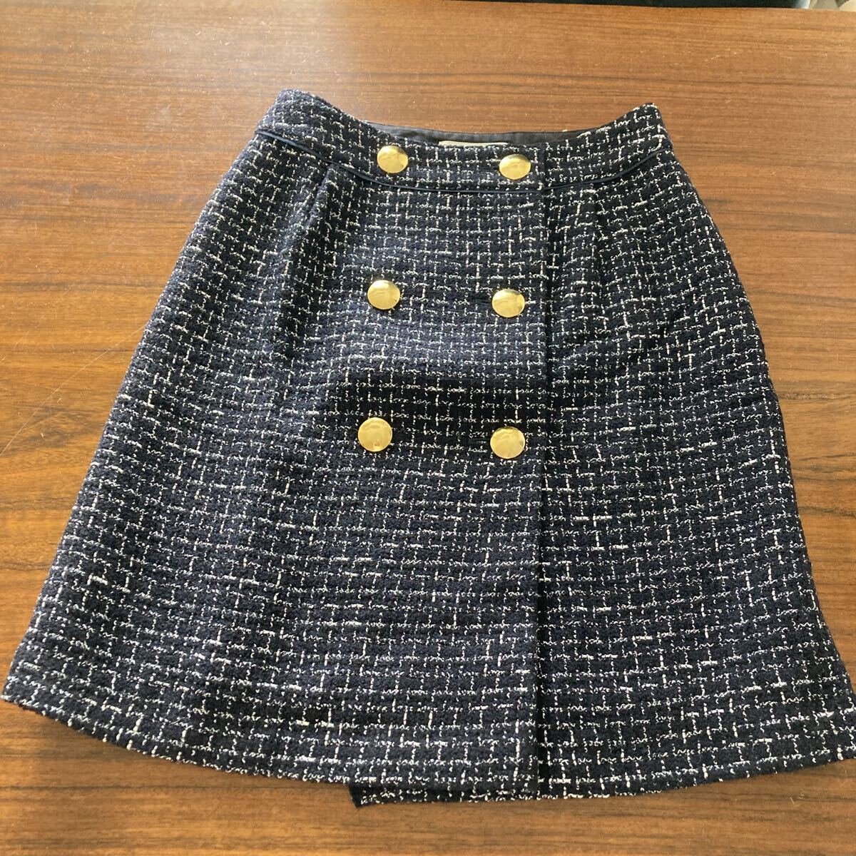 - ツイード かわいい タイトスカート ひざ丈 ネイビー 金ボタン 9号 SOUP ワールド