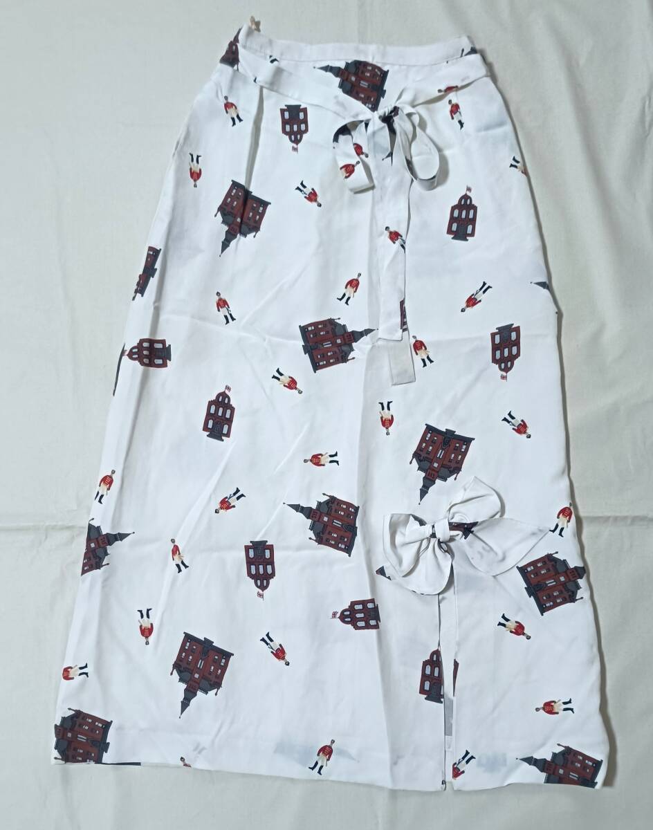 > PINK HOUSE ピンクハウス ロング スカート ポリエステル キュプラ レディース リボン 総柄 兵隊 ロンドン イギリス 7876