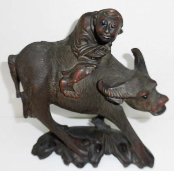 - YN22★中国古美術★唐物★十牛★唐牛★木製置物★中国古玩★一刀彫像★黒檀★紫檀★水牛★