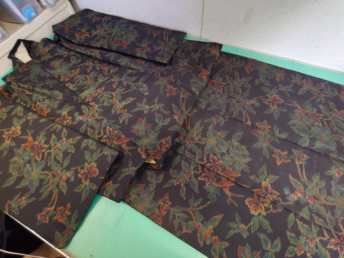 > ●139 高級 大島紬 花 枝 葉 模様 柄 同窓会 観劇 美術館 ショッピング 茶話会 オシャレ着 リメイク 身丈 152cm レトロ アンティーク ③