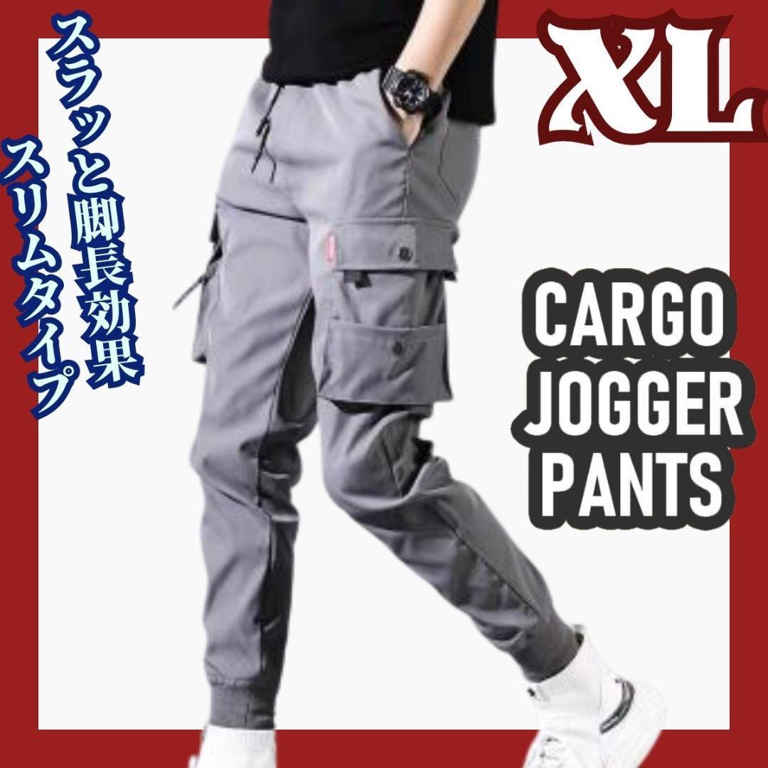 - ジョガーパンツ XL カーゴパンツ 細見えパンツ 細身 スリム グレー ストカジ