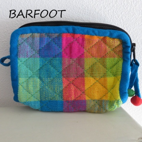 - 送料込 匿名配送 BAREFOOT ベアフット スリランカ製 ポーチ 青 カード入れ 鍵入れ 小銭入れ お財布
