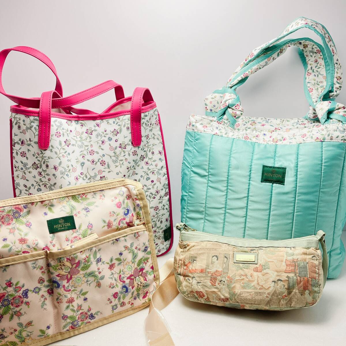 - 1137○ 卸売 MINTON ミントン ハンドバッグ トートバッグ ショルダーバッグ ナイロン レディース ファスナー レザー ダウン素材 花柄