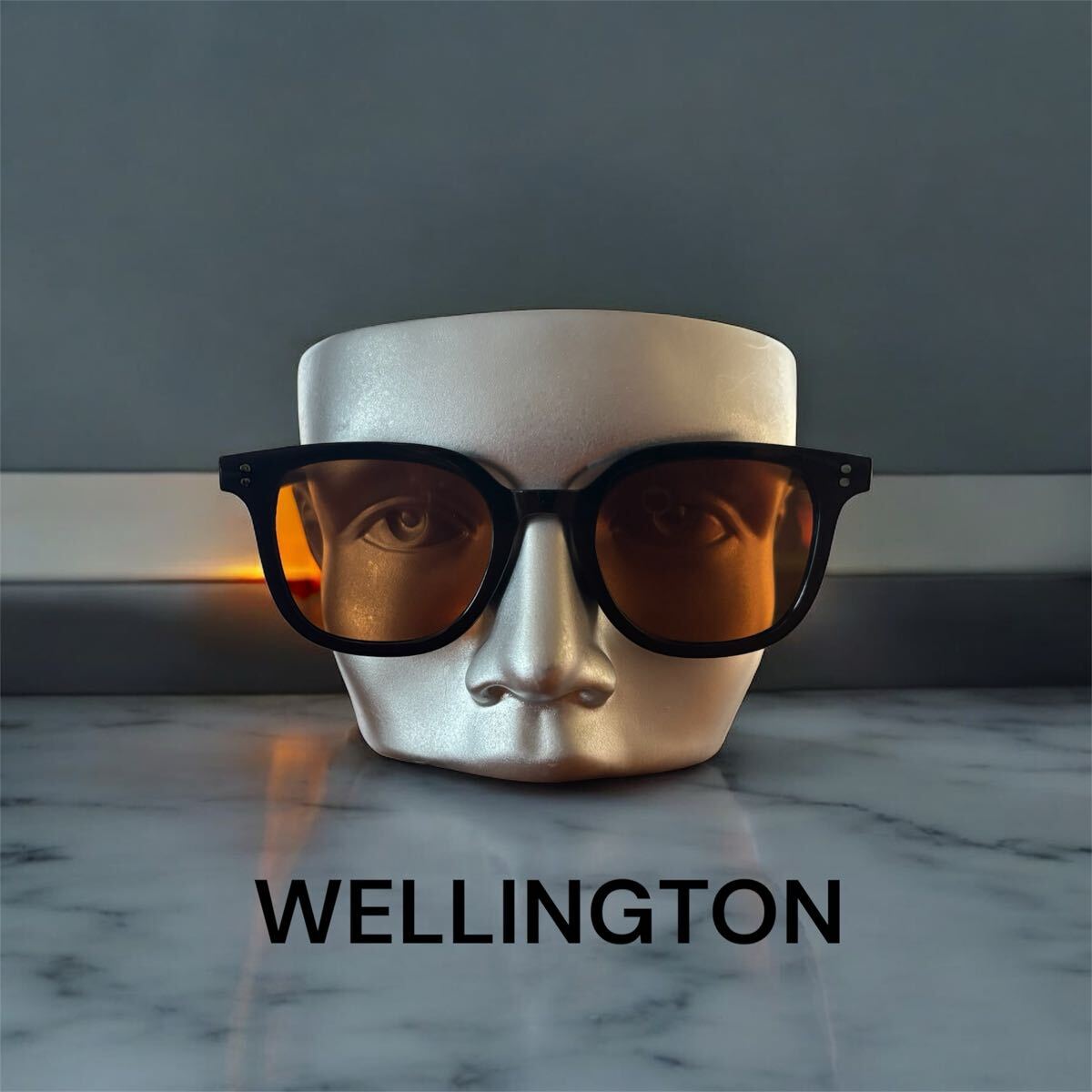 - ウェリントンサングラス●ブラウンレンズ●ブラックフレーム●大きめフレーム●男女兼用●ユニセックス