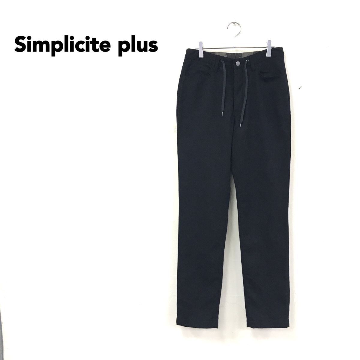 - 2H2239-G-N◆ Simplicite plus シンプリシテェプリュス ウール混デーパードパンツ 起毛 ウエスト紐 シンプル ◆ size46 黒 ポリエステル