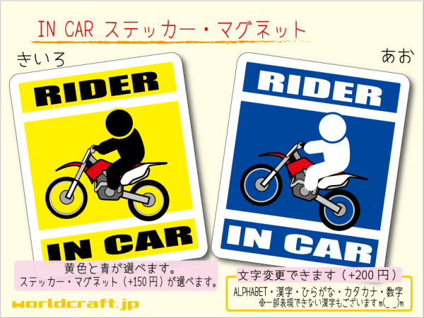 - ■_ IN CARステッカー モトクロスライダー!バイク 1枚 色・マグネット選択可■車に乗ってます おもしろ 耐水シール エンデューロ☆_ot