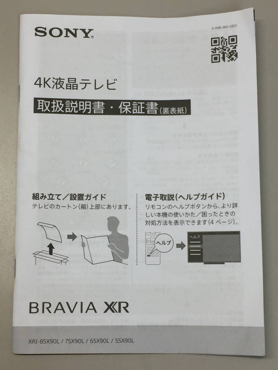 > a◇SONY/ソニー BRAVIA/ブラビア XR 4K液晶テレビ 取扱説明書・保証書 XRJ-85X90L/XRJ-75X90L/XRJ-65X90L/XRJ-55X90L