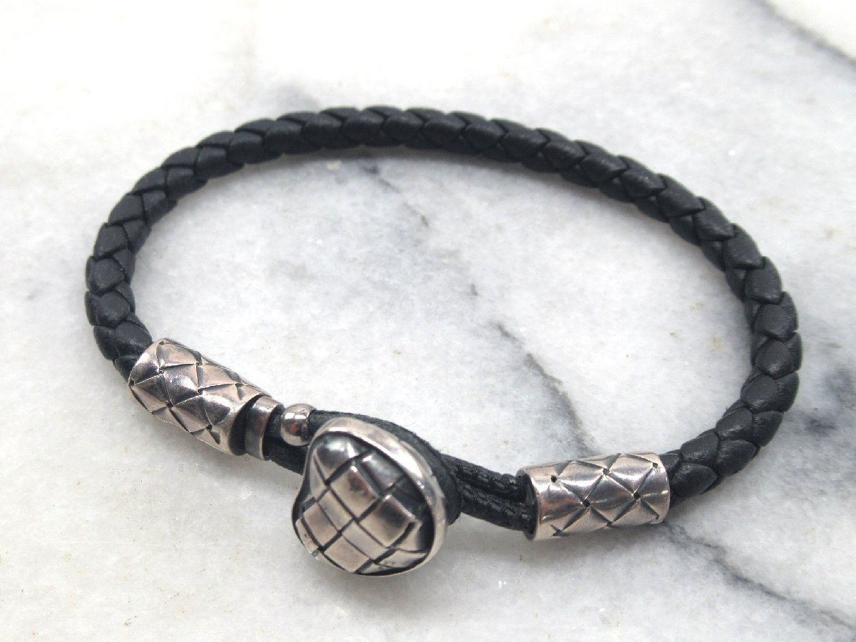 - ★【B送900円】2295 Bottega Veneta ボッテガヴェネタ レザーブレスレット イントレチャート 編み込み AG925 シルバー×黒