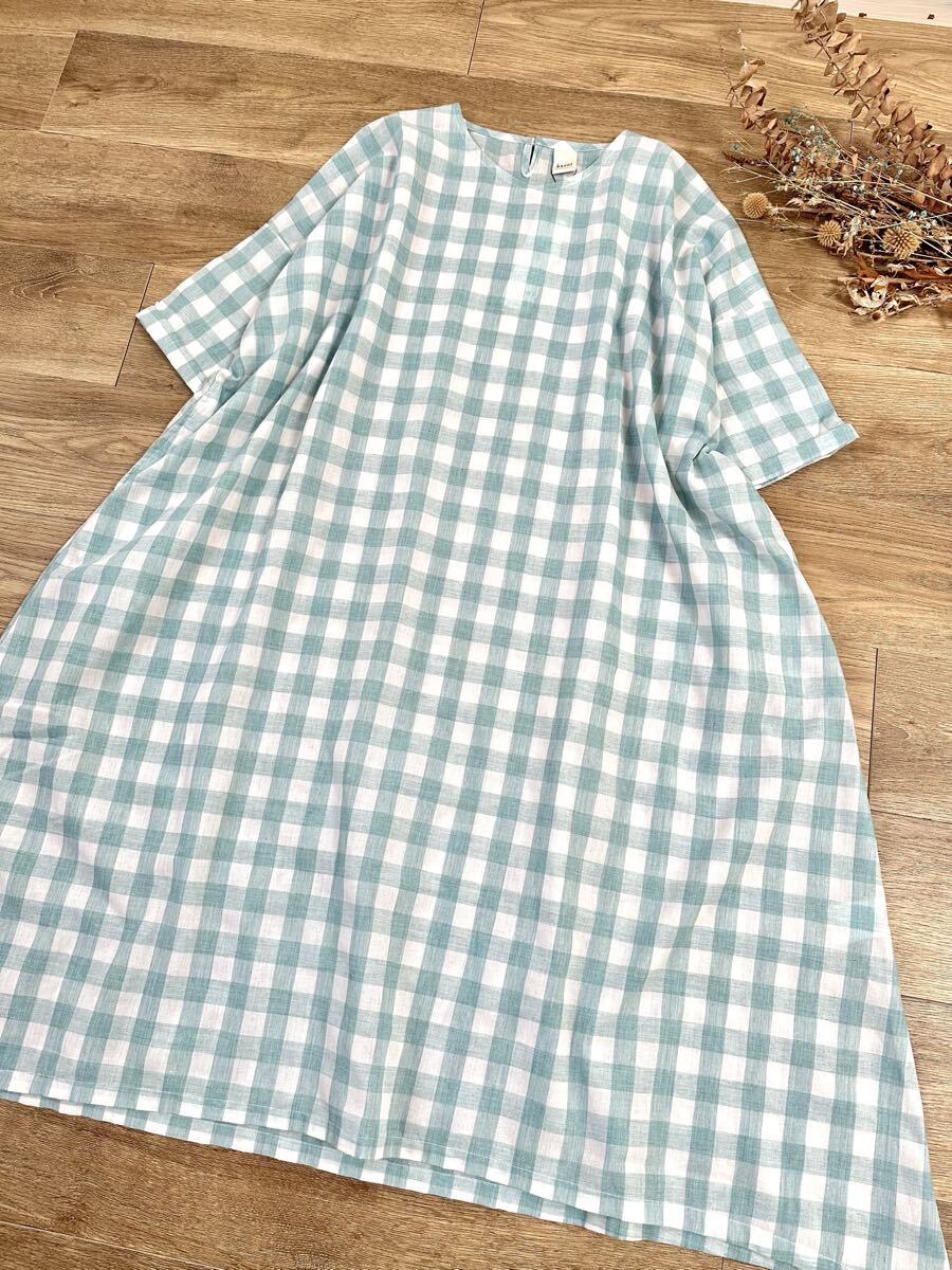 - タグ付き 新品 kacoi チェック柄 ゆったり ワンピース コットン混 たっぷり生地カン フリーサイズ