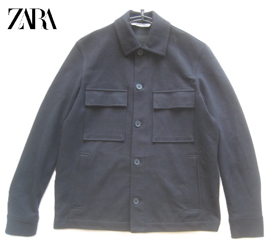 > 美品トルコ製!!ザラ ZARA*ワイドシルエット ストレッチポリコットンブルゾン・ジャケット M ブラック 黒