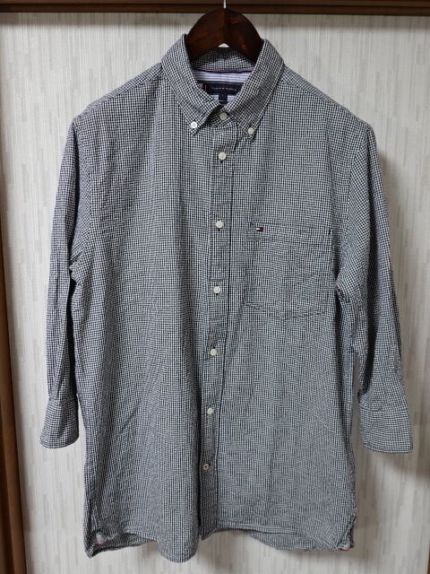 > ●TOMMY HILFIGER トミーヒルフィガー 8分袖 シャツ L ギンガムチェック ●0826●