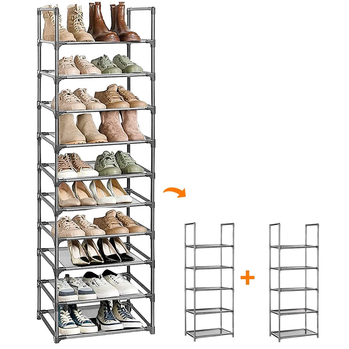 - シューズラック 10段 靴収納 18-20足 靴棚 下駄箱 省スペース シューズボックス スリム 玄関に靴を効率収納 靴入れ 組み