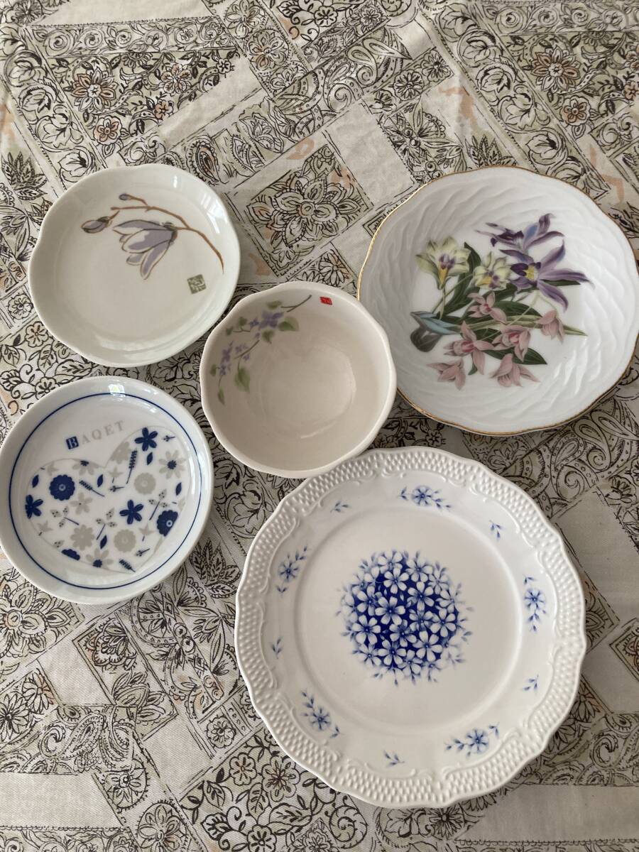 - 花がらお皿セット 小皿・小鉢など5枚 市田ひろみ たち吉豆皿2枚 Vincent’s ノリタケ(Pure&White NT JAPAN) 中古