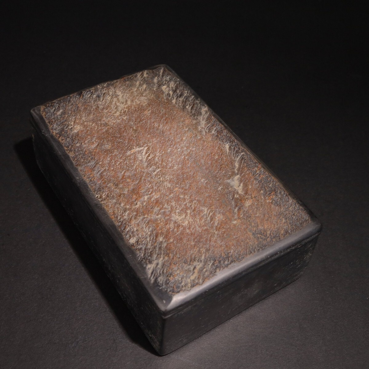 - 「古歙石硯 金暈 烏釘紋文房蓋硯 徐世昌銘 清時代」手彫り 文房四宝 書道具 中国古美術 旧蔵出