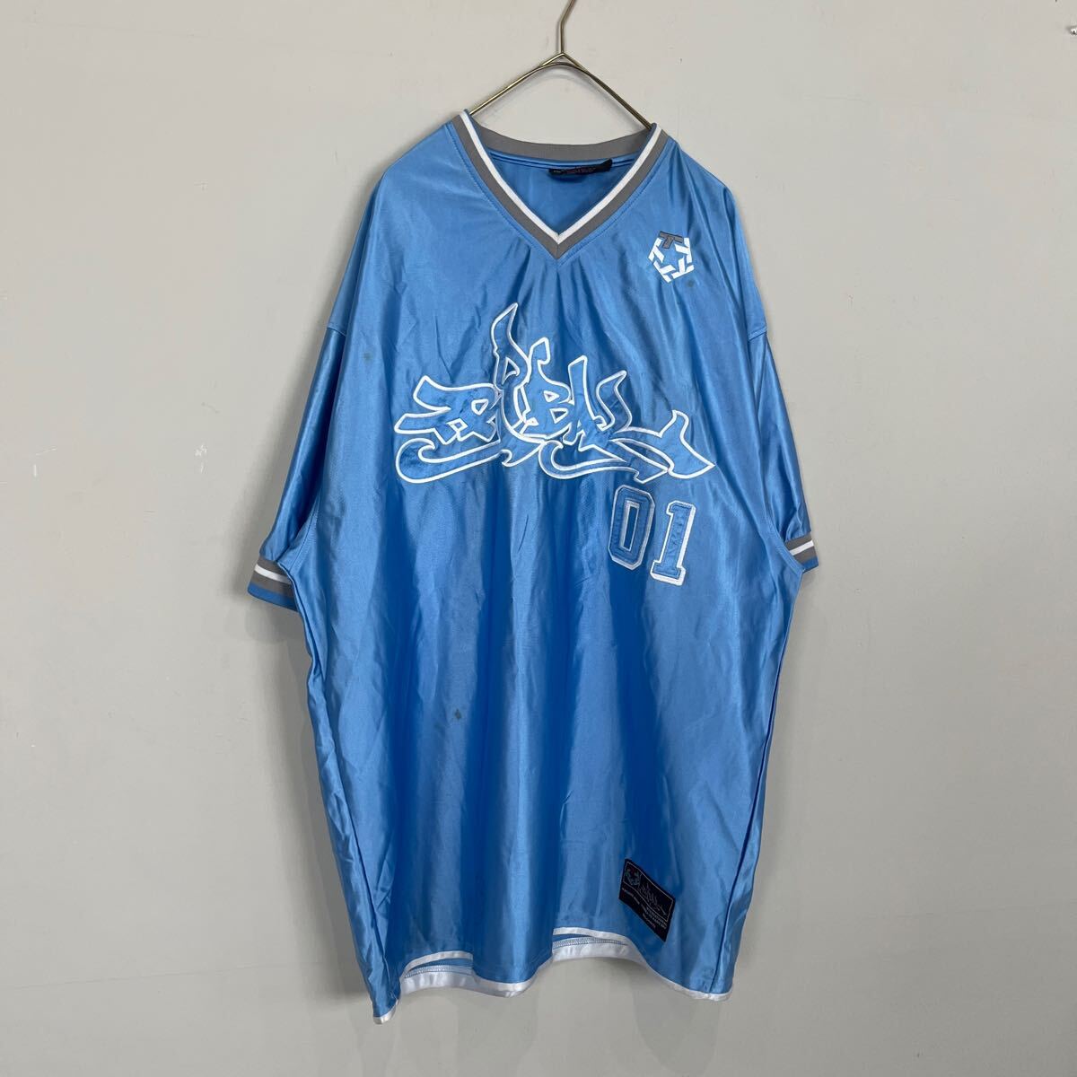 > 90〜00s ゲームシャツ TRIBAL GEAR 半袖 古着 XL メンズ 青 01 ストリート B-boy スポーツウェア ファッション オーバーサイズ